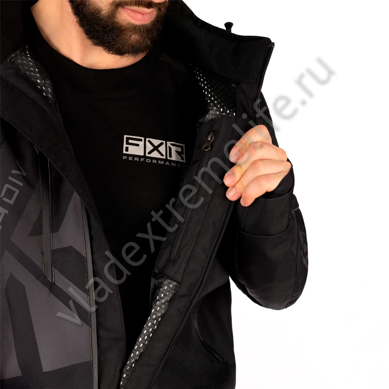 - Система вентиляции FXR Dry Vent™ по бокам, на груди и на ногах защищена от попадания снега и влаги