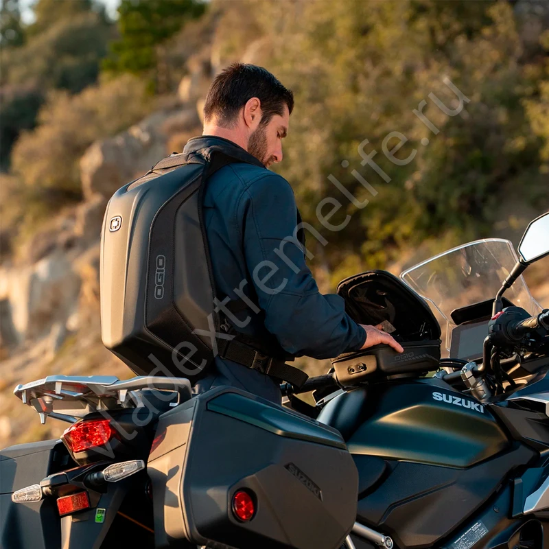 Рюкзак Ogio Mach 3 — аэродинамичный аксессуар для мотоциклистов, сочетающий комфорт и безопасность на высокой скорости. Жёсткий корпус не деформируется под напором ветра и защищает содержимое от влаги, а улучшенная вентиляция и эргономичные лямки обеспечивают удобство в движении.