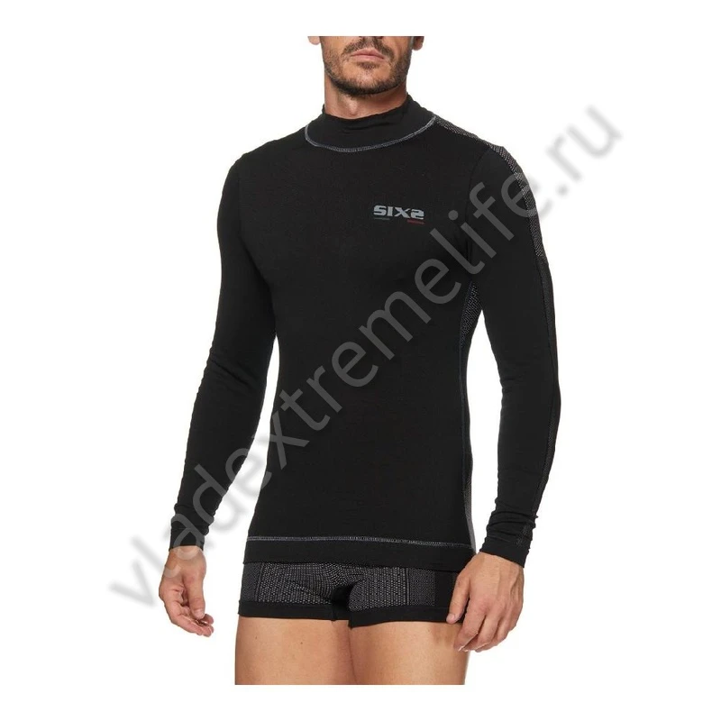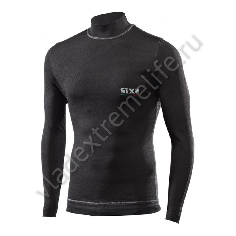Термокофта SIXS с технологией защиты от ветра FullFront WindShell Carbon. В отличие от стандартной модели TS4, она защищает руки по всей длине. Технология Воздушный щит создает воздушную подушку, которая предотвращает появление так называемого «парникового эффекта», увеличивающего потоотделение. Высокий ворот защищает горло от сквозняков и резких перепадов температуры. Водолазка идеальна для занятий спортом на открытом воздухе.