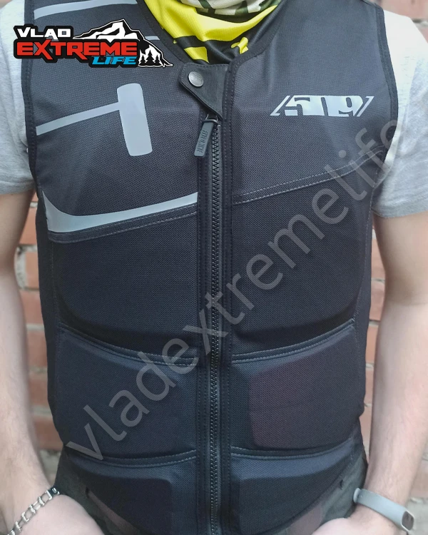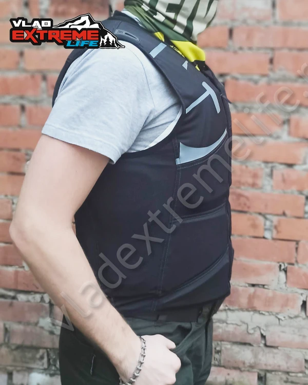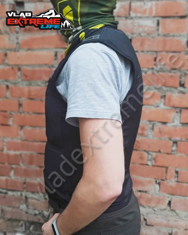 Новый защитный жилет сертифицирован CE, имеет специальные вставки на спине и груди. Жилет рекомендуется носить под курткой для более надежной защиты и комфорта.