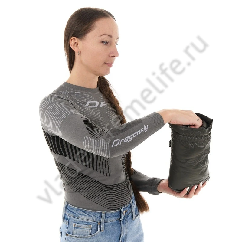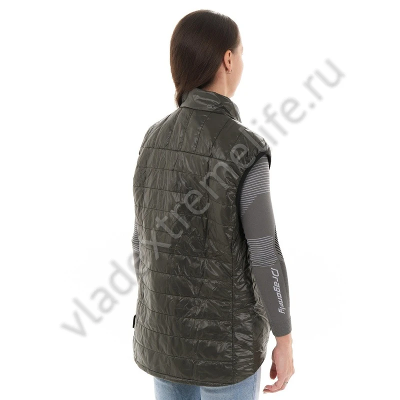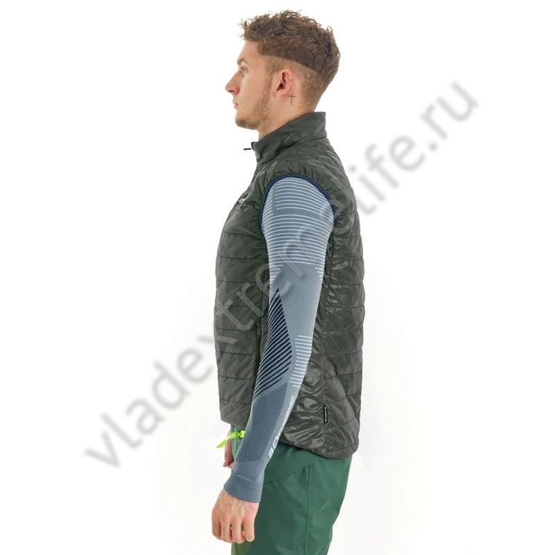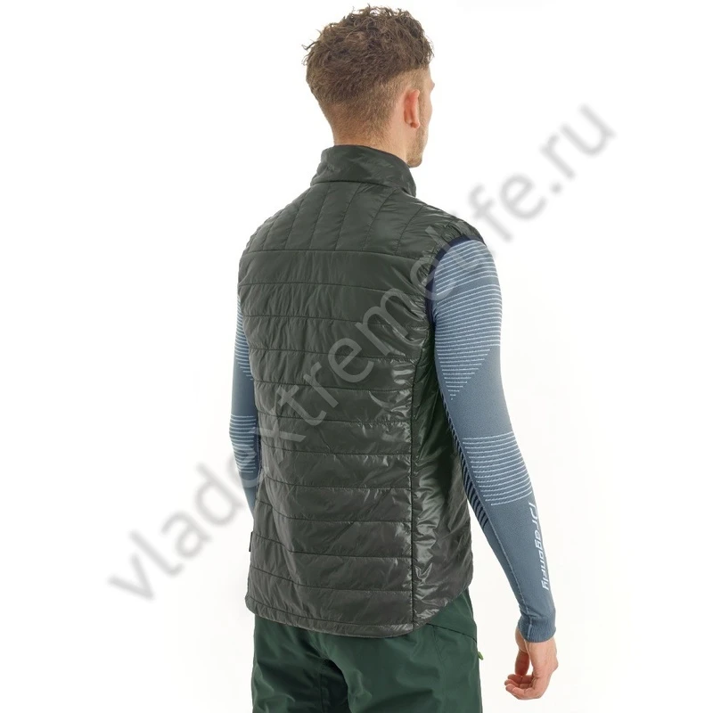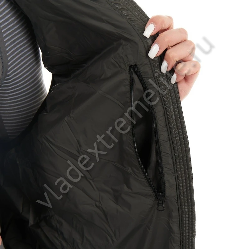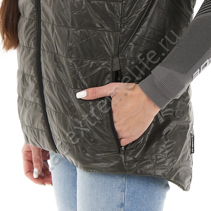 Идеально садится по фигуре и не сковывает движений. Жилет обладает небольшим весом, высокими теплоизоляционными свойствами и компактностью в сложенном состоянии. Имеет два кармана на молнии.