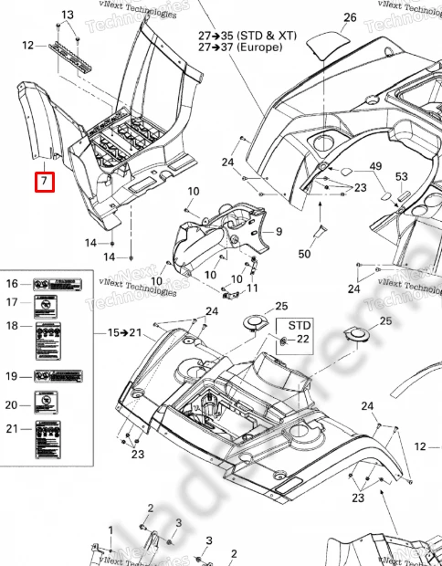705002485 Подножка правая короткая CanAm Outlander G1