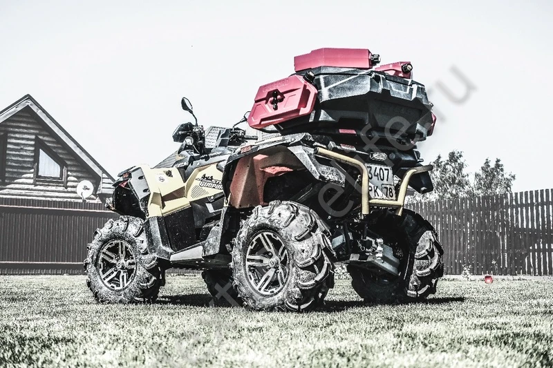 - Идеально встаёт на багажную решетку, не мешает пассажиру, не выступает за габариты и является идеальным дополнением квадроцикла