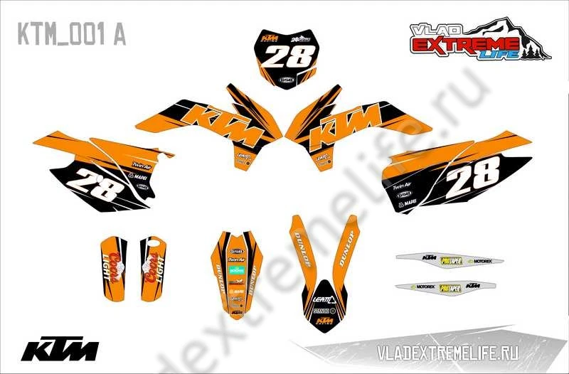 Наклейки VEL на кроссовый мотоцикл KTM