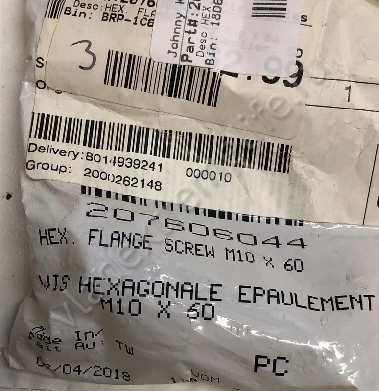 BRP (BOMBARDIER) SKI-DOO OEM - 207606044 - Hex. Flange Screw M10 X 60 - Крепеж Снегохода - Крепление - Винт