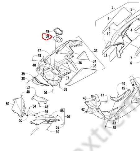 • Уплотнитель используется между пластиковым днищем и глушителем снегохода