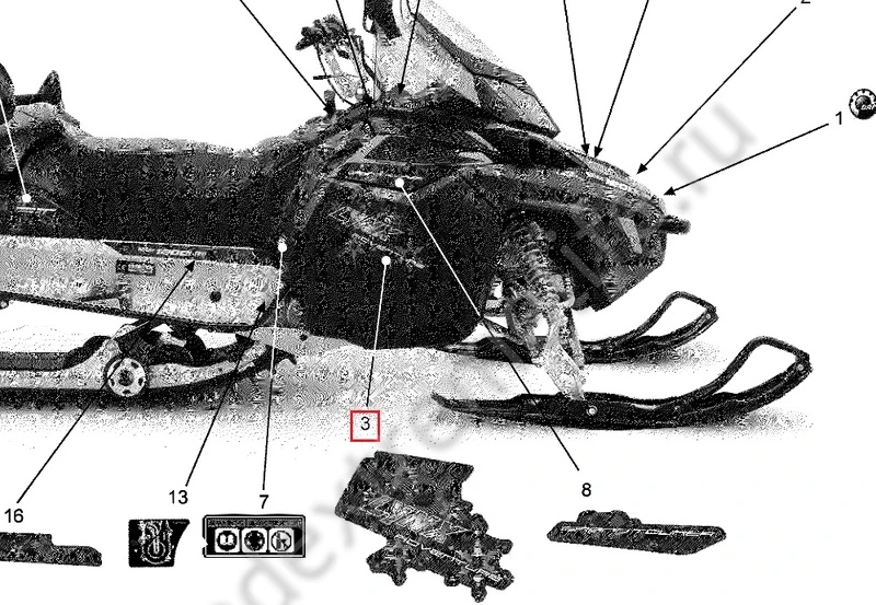 • Устанавливается на левой стороне снегохода