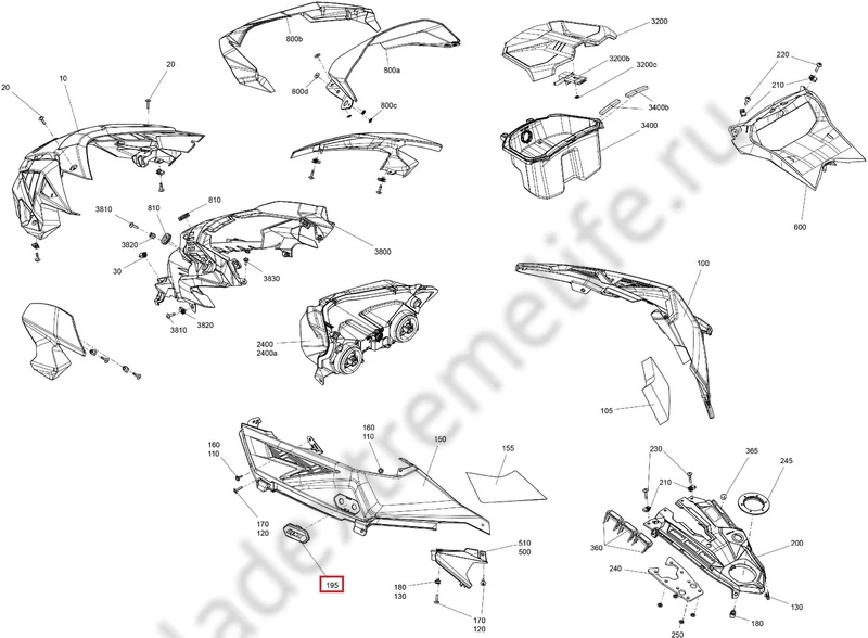 BRP (BOMBARDIER) OEM - 517308121 - Upper Side Panel Cap - Заглушка Боковины Снегохода - Крышка