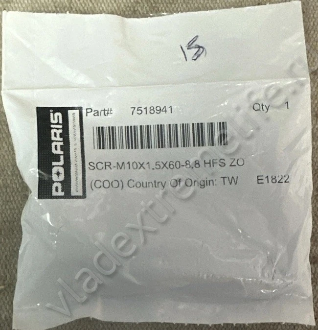 PURE POLARIS OEM - 7518941 - SCREW, 10 MMX 1.5 MM X 60 MM - Крепеж Снегохода - Крепление