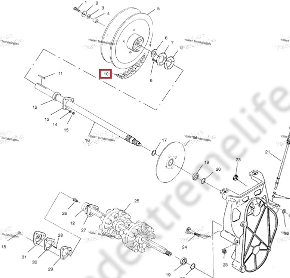 • Ремень - важный компонент вариатора вашего снегохода. Для достижения максимальной эффективности необходимо проверить и настроить натяжку ремня и соосность вариатора. Также необходимо сохранять шкивы вариатора в чистоте. Обратитесь к сервисному мануалу за подробностями