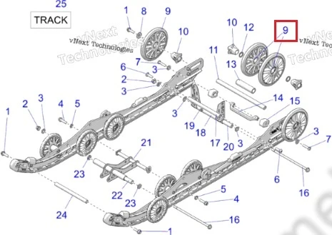 PURE POLARIS OEM - 1590459 - WHEEL SPOKE ASSEMBLY, 7.25 - Каток Натяжной Внутренний Для Гусеницы Снегохода - Колесо В Заднюю Подвеску