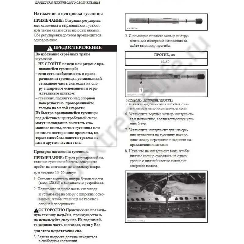 • Правильная натяжка гусеницы важна для максимальной передачи мощности с двигателя, а также продлевает срок службы самой гусеницы